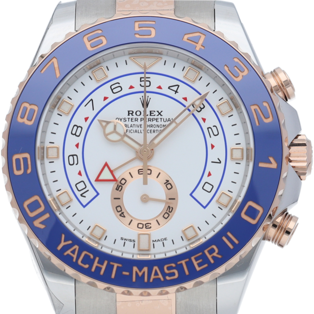 ヨットレース競技に特化した「ヨットマスター2」。ロック&リリース機能、シンクロナイゼーション機能、プログラマブル・カウントダウン機能に加え、最大10分までのカウントダウンクロノを搭載した『プログラマブル・クロノグラフ』を採用。ロレックスならではの実用性と高級感にあふれたコンプリケーションウォッチです。最新のピンクゴールドコンビとの相性も抜群の一本です。