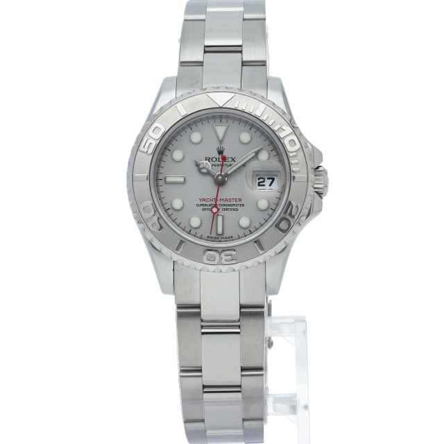 ワンランク上のスポーツモデル「ヨットマスター」。ベゼルと文字盤には贅沢なプラチナが使用され、上品で高級感ある作りが人気です。すでに廃盤となったレディースサイズです。