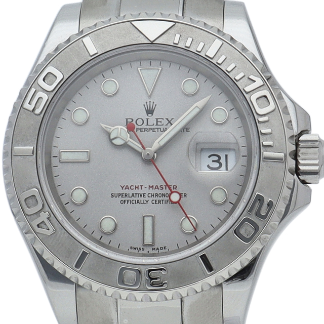 ワンランク上のスポーツモデル「ヨットマスター」。ベゼルと文字盤には贅沢なプラチナが使用され、上品で高級感ある作りが人気です。