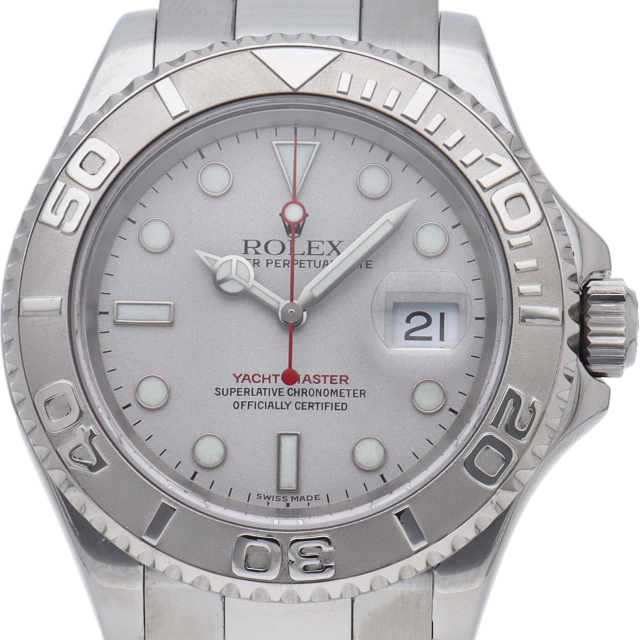 ワンランク上のスポーツモデル「ヨットマスター」。ベゼルと文字盤には贅沢なプラチナが使用され、上品で高級感ある作りが人気です。