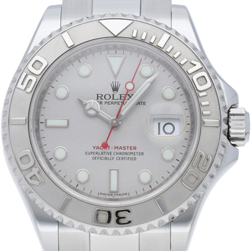 ワンランク上のスポーツモデル「ヨットマスター」。ベゼルと文字盤には贅沢なプラチナが使用され、上品で高級感ある作りが人気です。