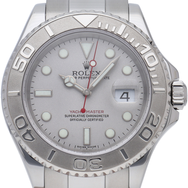 ワンランク上のスポーツモデル「ヨットマスター」。ベゼルと文字盤には贅沢なプラチナが使用され、上品で高級感ある作りが人気です。