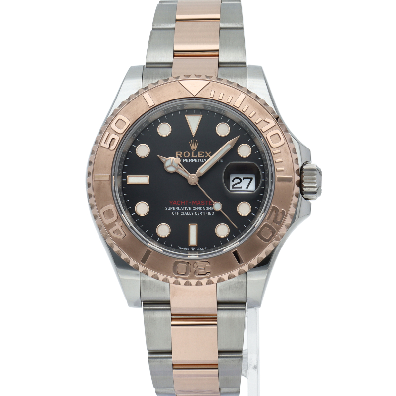 航海やセーリングのための機能とスタイルを持つ「オイスターパーペチュアル ヨットマスター40」。こちらの126621は40mmケースに、ステンレスとエバーローズゴールドのロレゾールモデルです。ムーブメントにはロレックスが特許を取得したクロナジーエスケープメントを採用した高精度で、さらに耐磁性能と耐衝撃性能に優れた70時間パワーリザーブのキャリバー3235を搭載します。