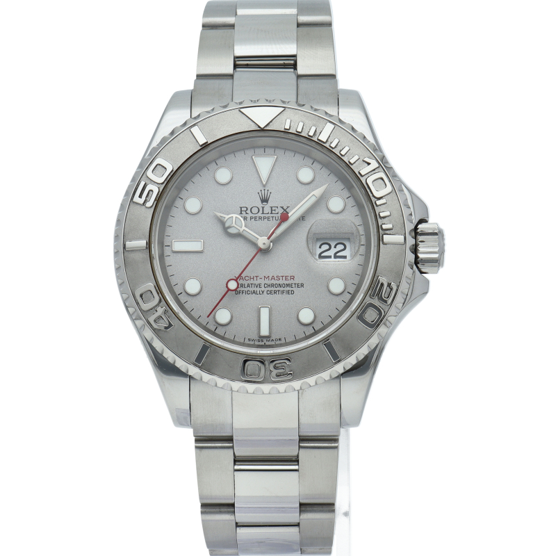 ワンランク上のスポーツモデル「ヨットマスター」。ベゼルと文字盤には贅沢なプラチナが使用され、上品で高級感ある作りが人気です。