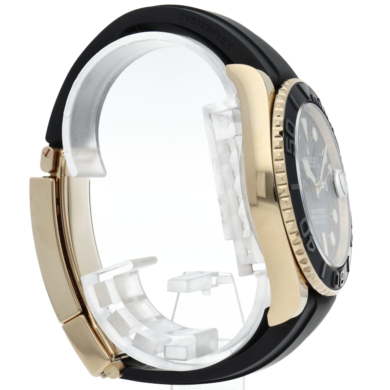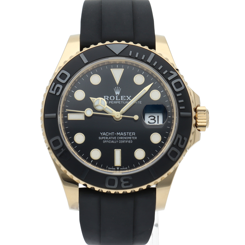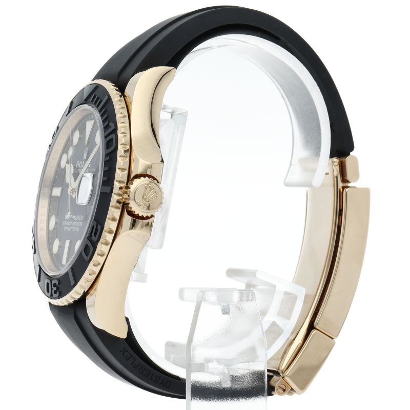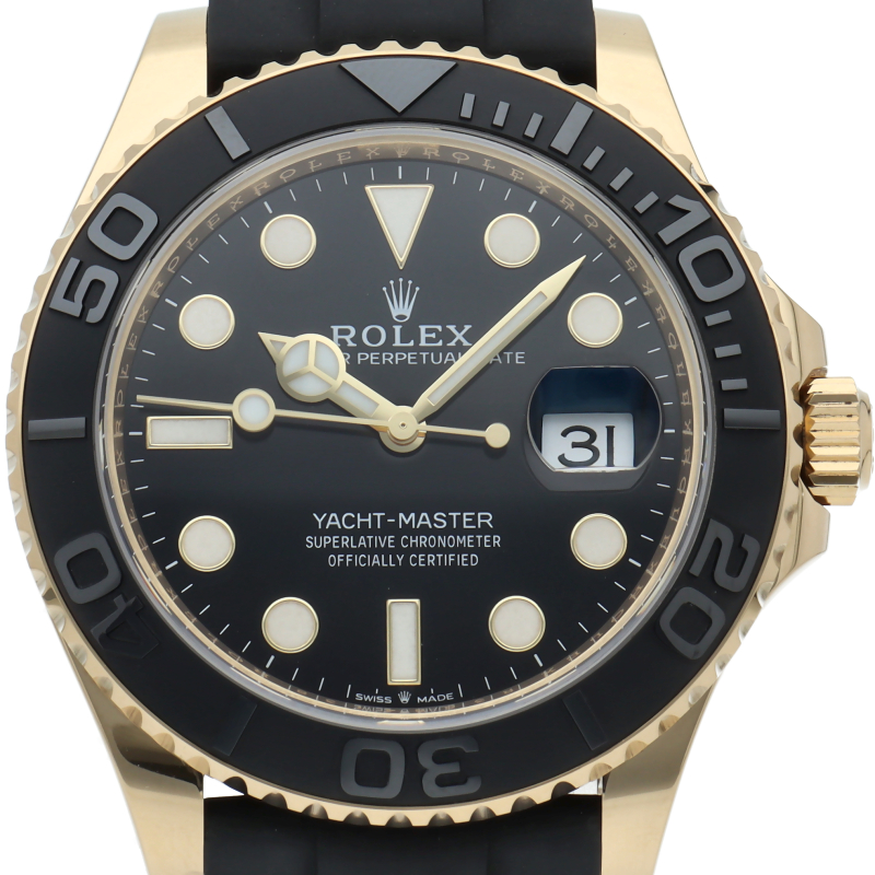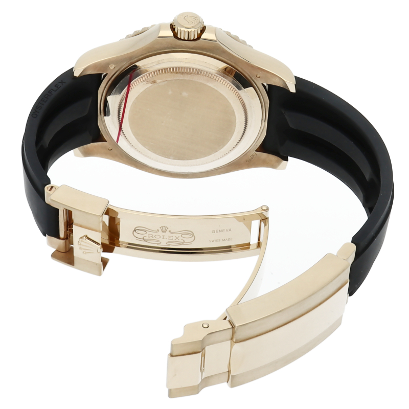 ワンランク上のスポーツモデル「ヨットマスター」。ベゼルプレートには耐傷性・耐久性に優れたブラックセラミックを採用しています。ムーブメントには自社開発キャリバーの3235を搭載。14件もの特許を取得し、新開発のクロナジーエスケープメントの高い効率性により、ケーシング後の日差を-2~+2秒の範囲に留めるだけでなく、約70時間ものロングパワーリザーブを実現しました。
