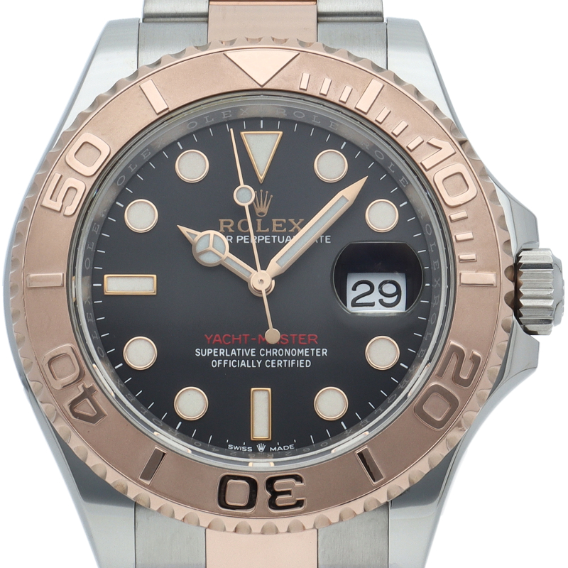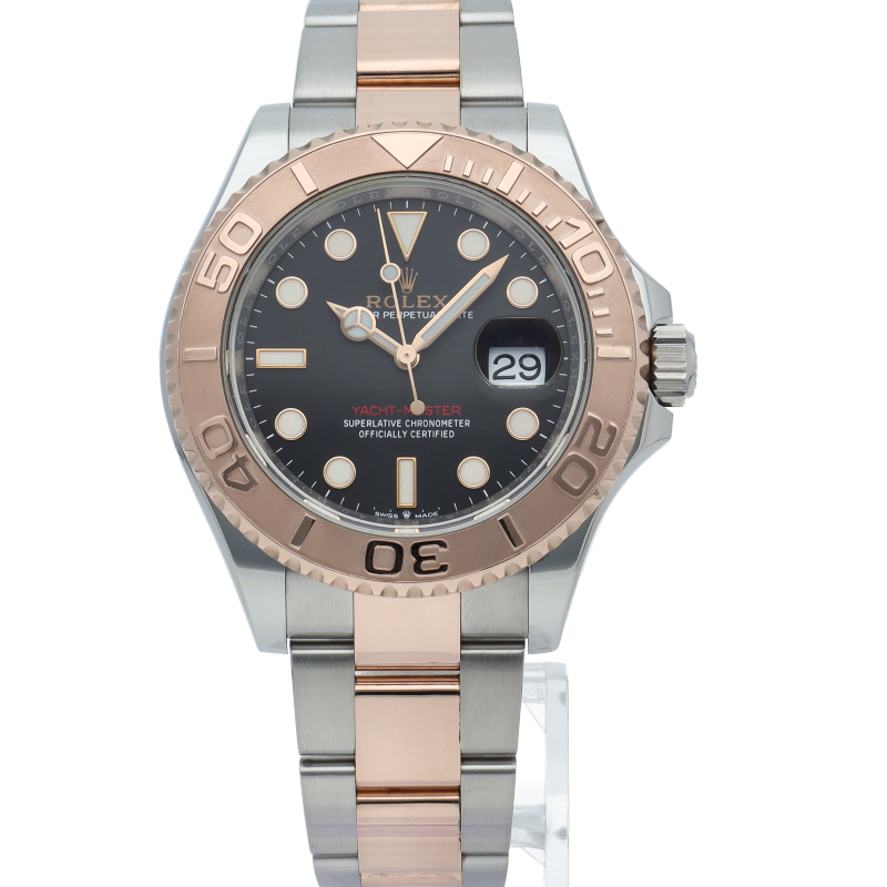 航海やセーリングのための機能とスタイルを持つ「オイスターパーペチュアル ヨットマスター40」。こちらの126621は40mmケースに、ステンレスとエバーローズゴールドのロレゾールモデルです。ムーブメントにはロレックスが特許を取得したクロナジーエスケープメントを採用した高精度で、さらに耐磁性能と耐衝撃性能に優れた70時間パワーリザーブのキャリバー3235を搭載します。