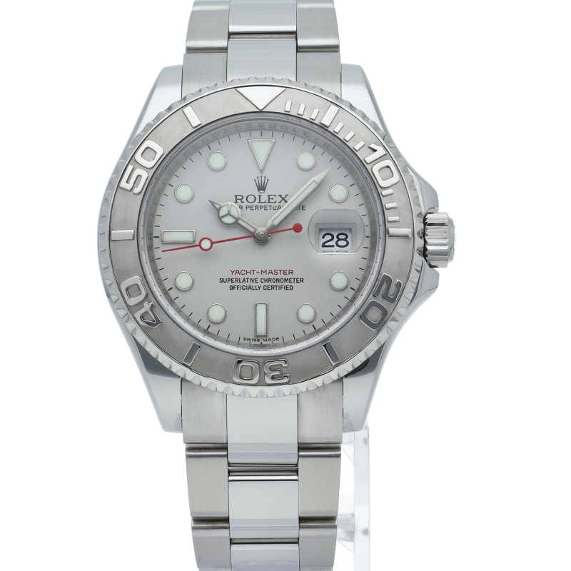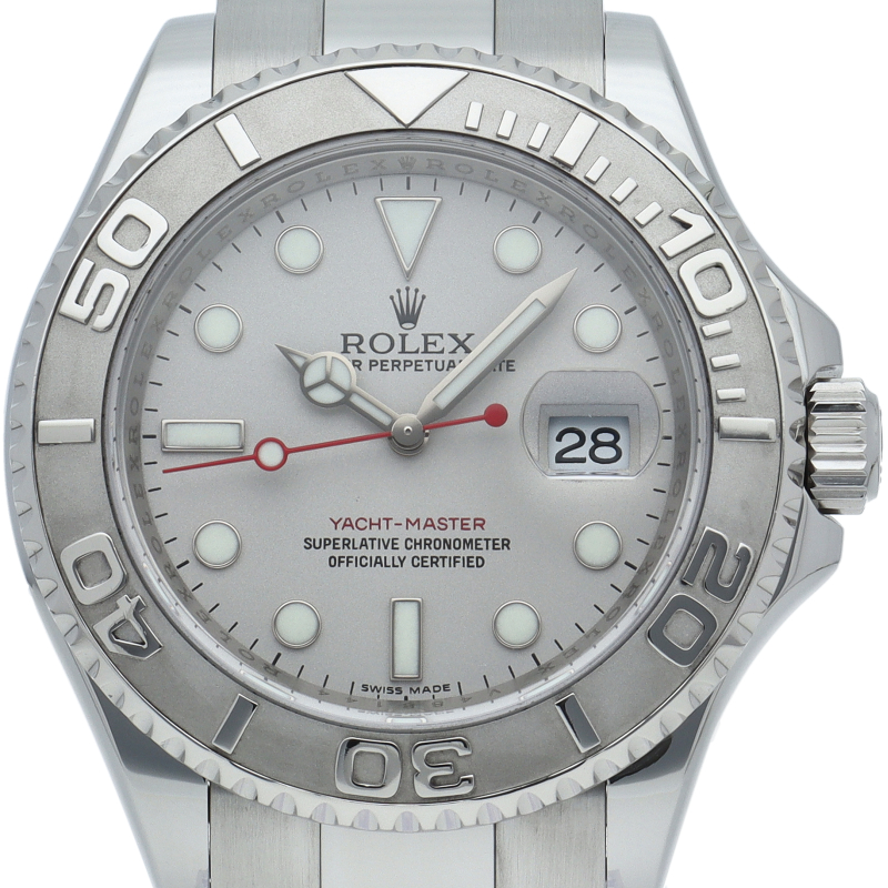 ワンランク上のスポーツモデル「ヨットマスター」。ベゼルと文字盤には贅沢なプラチナが使用され、上品で高級感ある作りが人気です。