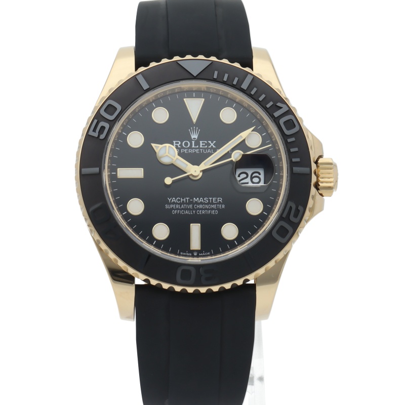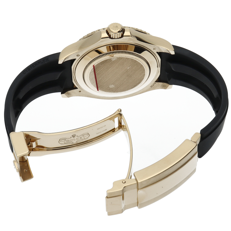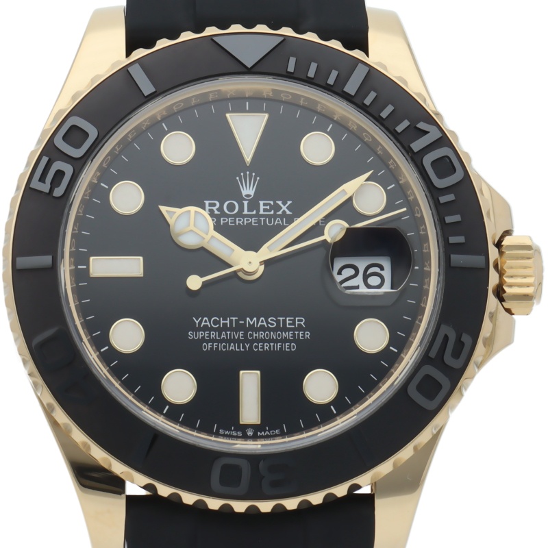 ワンランク上のスポーツモデル「ヨットマスター」。ベゼルプレートには耐傷性・耐久性に優れたブラックセラミックを採用しています。ムーブメントには自社開発キャリバーの3235を搭載。14件もの特許を取得し、新開発のクロナジーエスケープメントの高い効率性により、ケーシング後の日差を-2~+2秒の範囲に留めるだけでなく、約70時間ものロングパワーリザーブを実現しました。