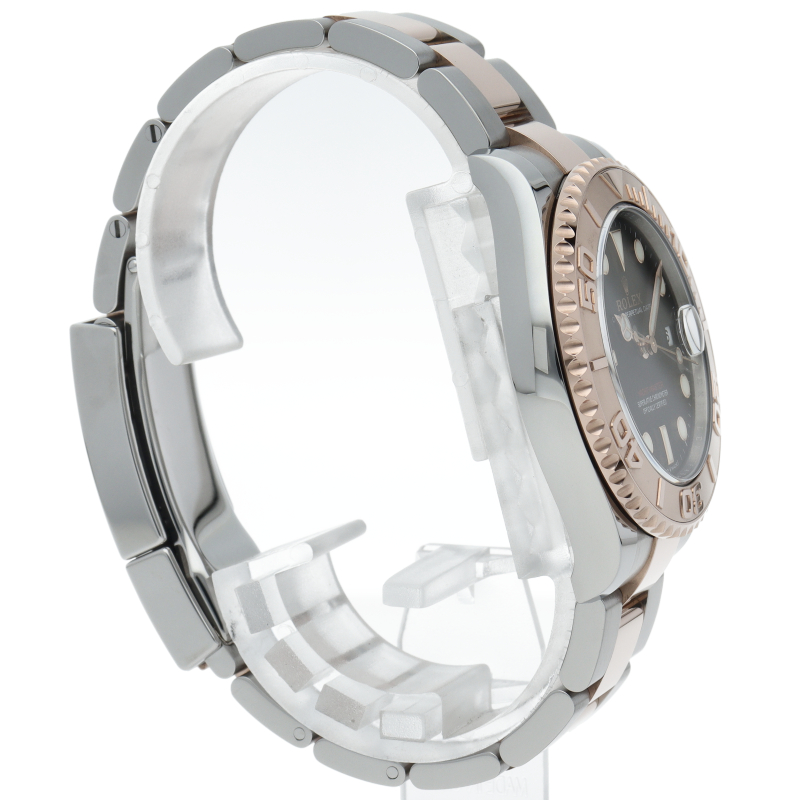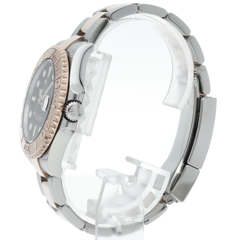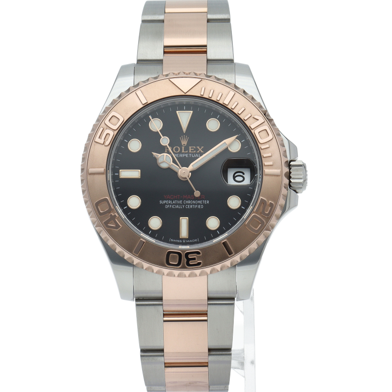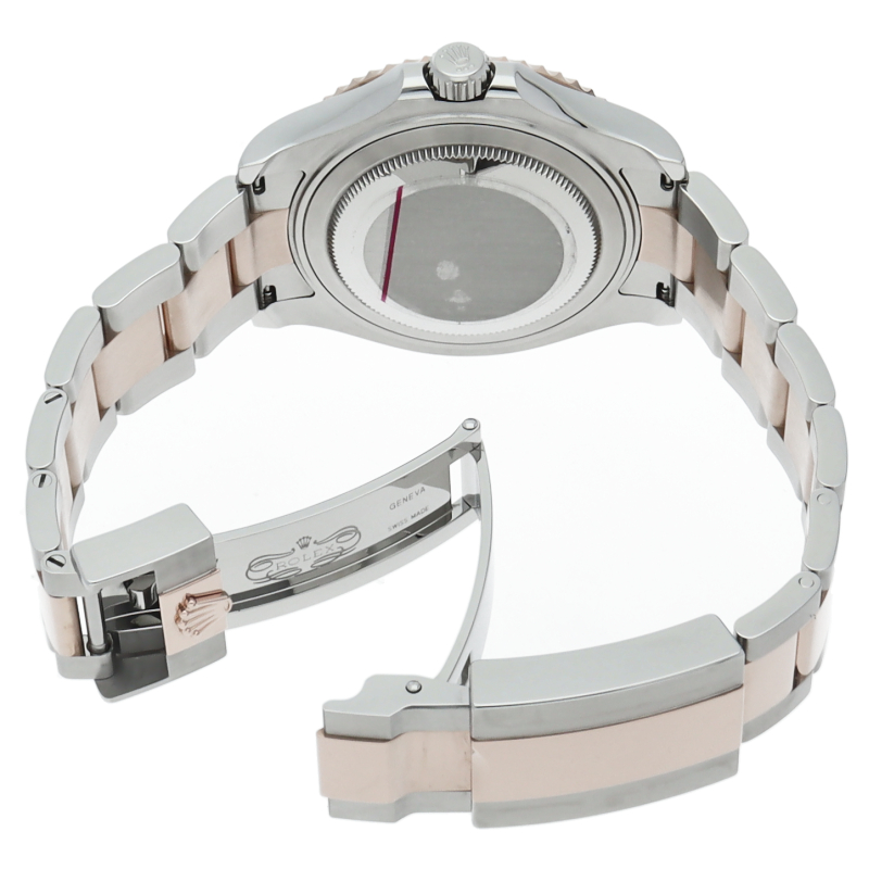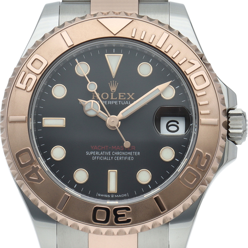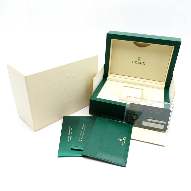 ワンランク上のスポーツモデル「ヨットマスター」。搭載されている自社製ムーブメントには、ロレックスが5年間を費やして開発したパラクロムヒゲゼンマイを採用。ドットのインデックスには青白い発光をするクロマライト塗料となりました。またオイスターロッククラスプを採用することで高級感が向上しています。