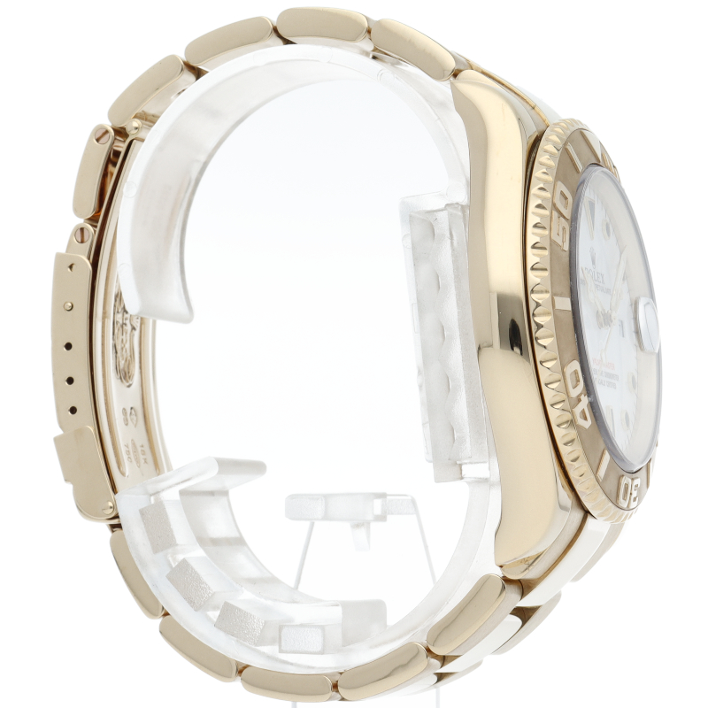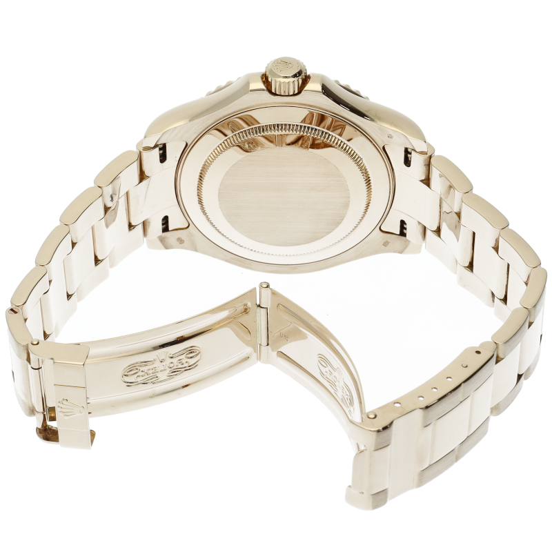 サブマリーナの上位機種として登場した「ヨットマスター」。イエローゴールドで作られ、ゴージャスな印象に仕上がっています。
