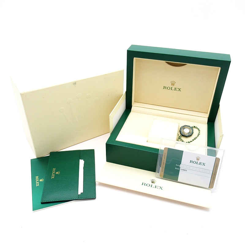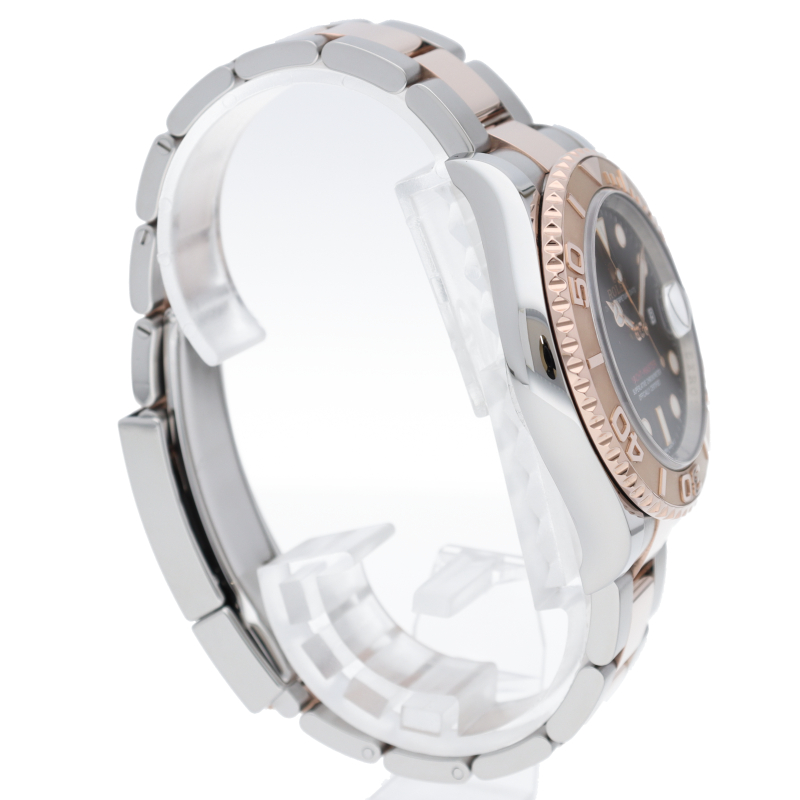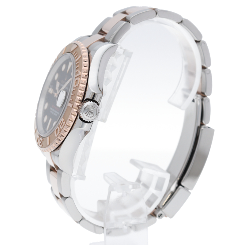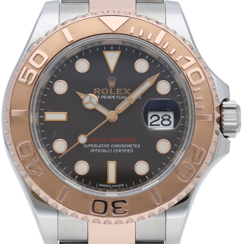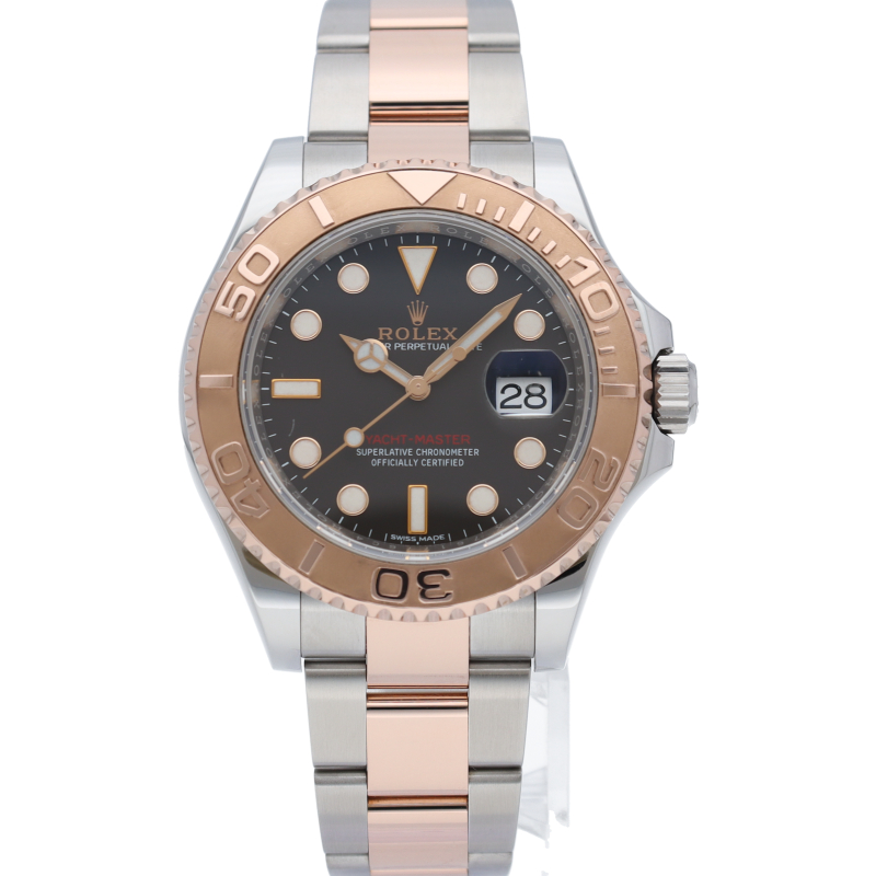 ワンランク上のスポーツモデル「ヨットマスター」。搭載されている自社製ムーブメントには、ロレックスが5年間を費やして開発したパラクロムヒゲゼンマイを採用。ドットのインデックスには青白い発光をするクロマライト塗料となりました。またオイスターロッククラスプを採用することで高級感が向上しています。
