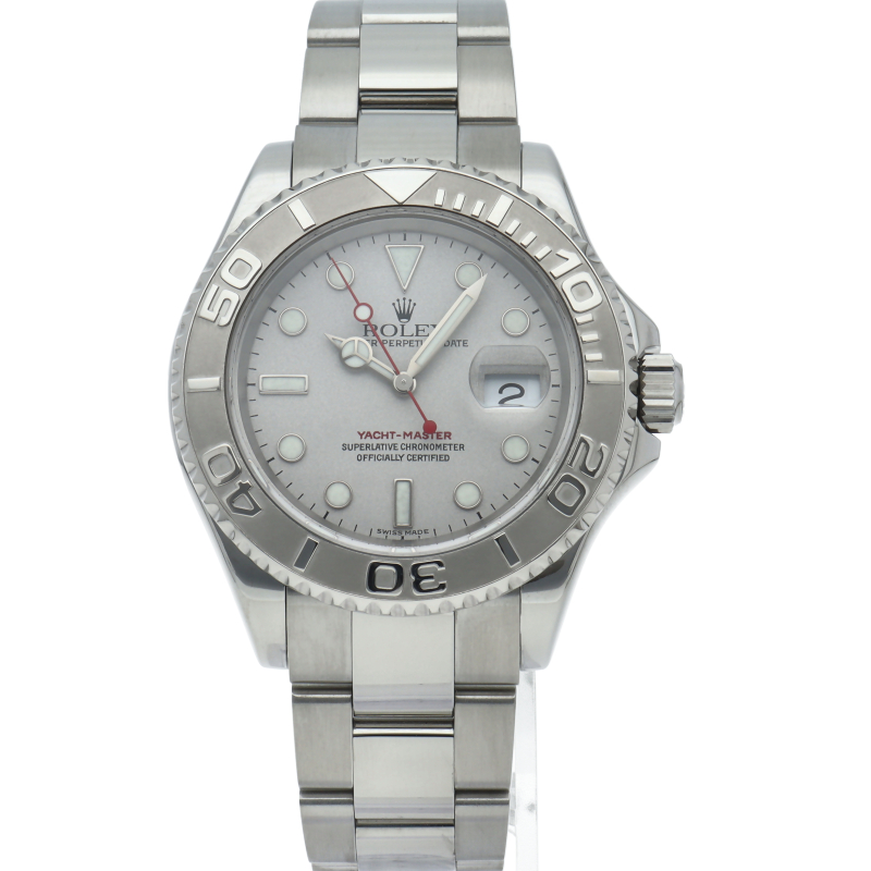 ワンランク上のスポーツモデル「ヨットマスター」。ベゼルと文字盤には贅沢なプラチナが使用され、上品で高級感ある作りが人気です。