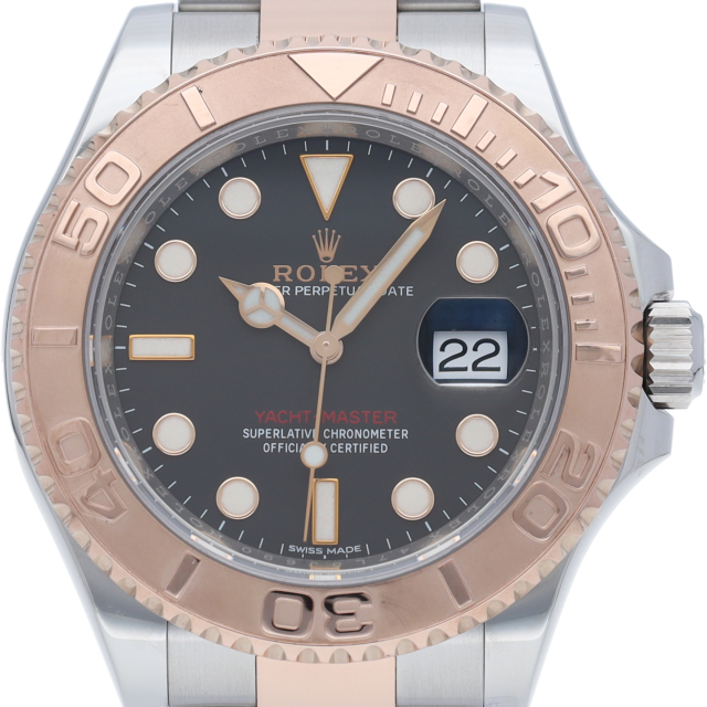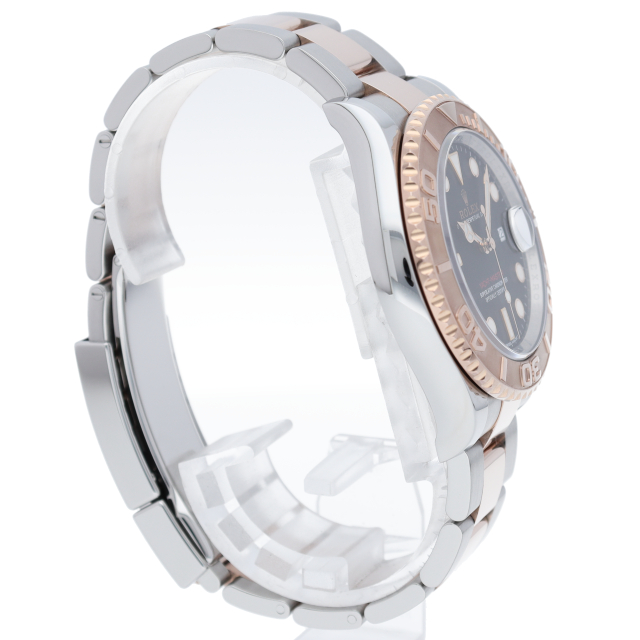 ワンランク上のスポーツモデル「ヨットマスター」。搭載されている自社製ムーブメントには、ロレックスが5年間を費やして開発したパラクロムヒゲゼンマイを採用。ドットのインデックスには青白い発光をするクロマライト塗料となりました。またオイスターロッククラスプを採用することで高級感が向上しています。