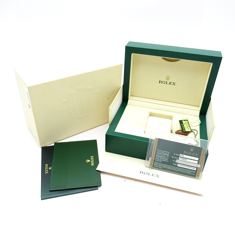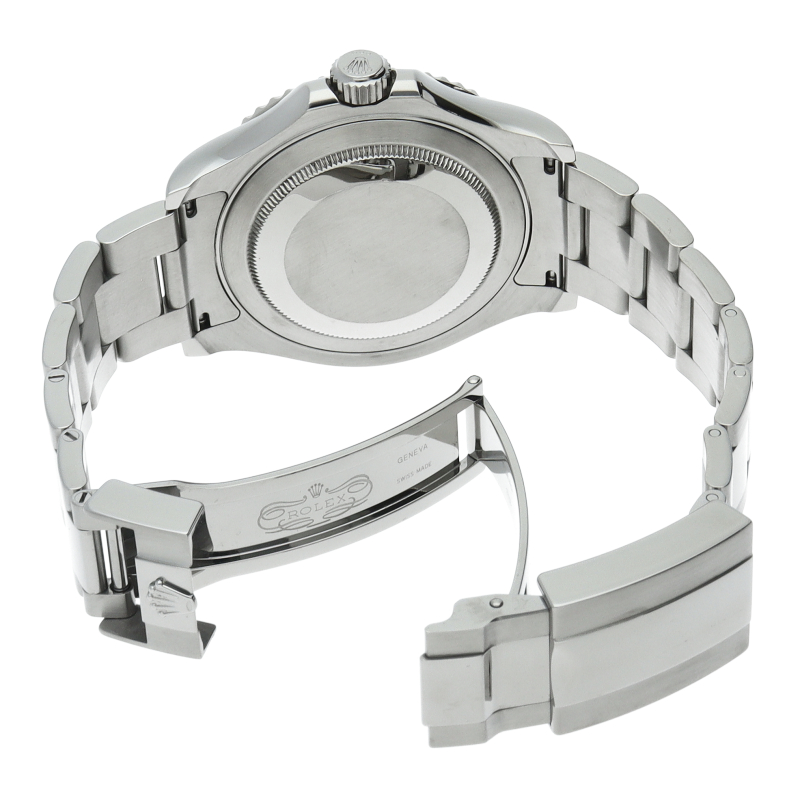 ワンランク上のスポーツモデル「ヨットマスター」。搭載されている自社製ムーブメントには、ロレックスが5年間を費やして開発したパラクロムヒゲゼンマイを採用。ドットのインデックスには青白い発光をするクロマライト塗料となりました。またオイスターロッククラスプを採用することで高級感が向上しています。