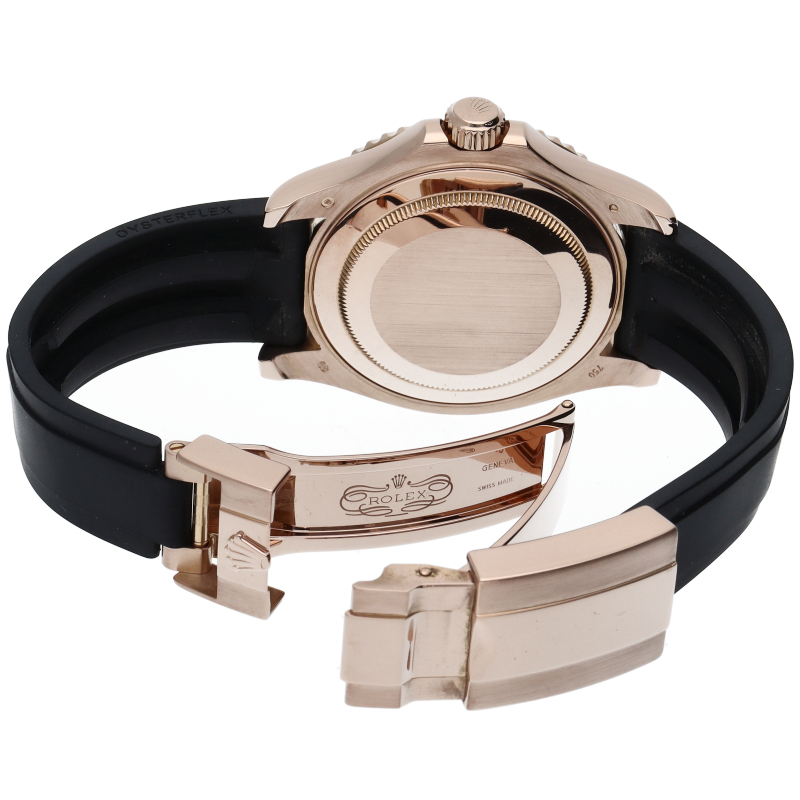 ロレックスがこのモデルの為に新たに開発すると同時に特許を取得した「オイスターフレックス ブレスレット」は、超弾性メタルブレードをブラック エラストマーでコーティングしたもの。ラバーベルトの耐水性やスポーティーさを纏いながらも、メタルブレスレットに匹敵する強靭性、耐久性を誇ります。エバーローズゴールドケースには、耐磁性パラクロムヘアスプリングを装備したクロノメーター認定のキャリバー3135を搭載。