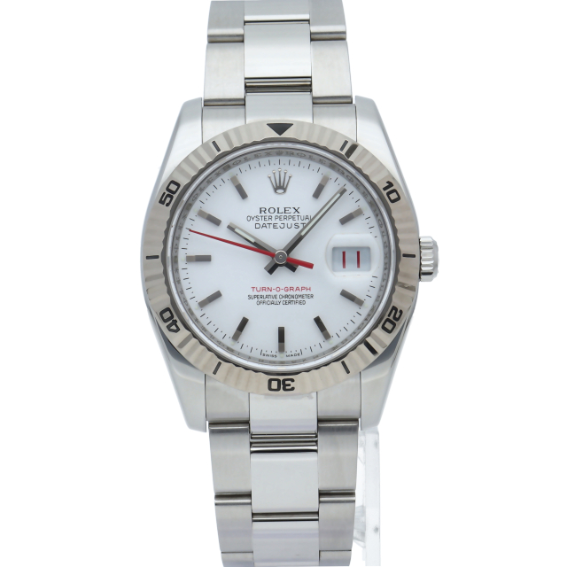 サンダーバードの後継機として誕生した「ターノグラフ」はケースやバックル等が仕様変更され高級感溢れる1本です。ホワイトゴールド製のベゼルが特徴です。