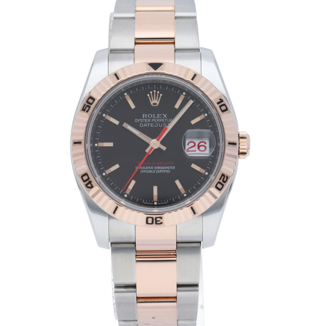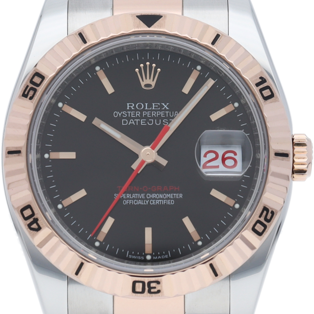 サンダーバードの後継機として誕生した「ターノグラフ」はケースやバックル等が仕様変更され高級感溢れる1本です。人気の高いピンクゴールドとのコンビモデルです。