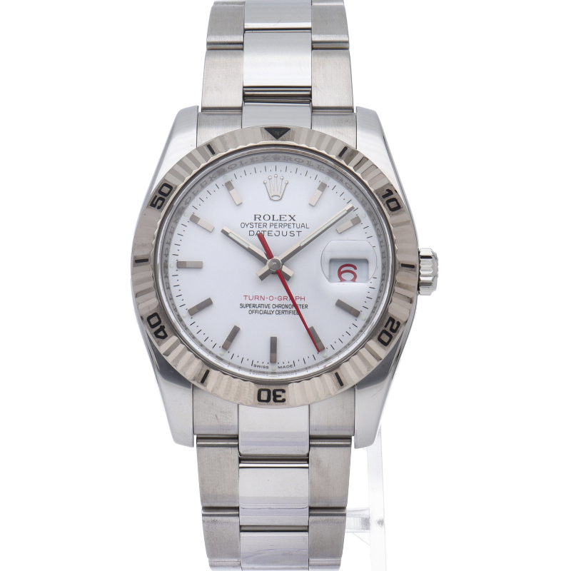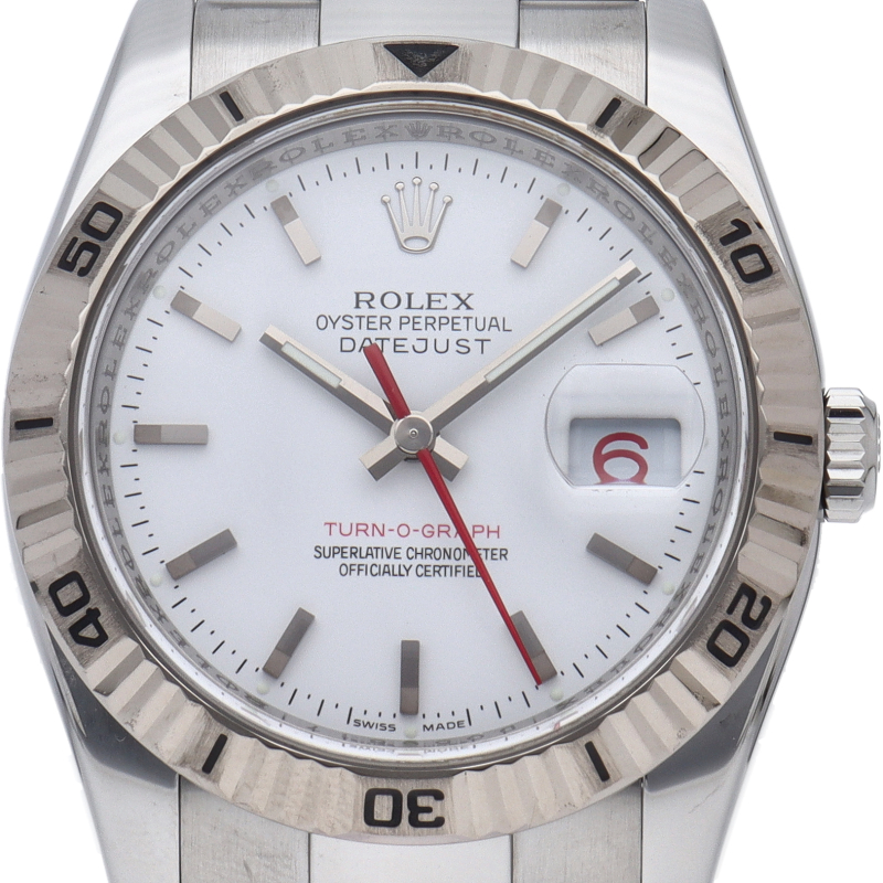 サンダーバードの後継機として誕生した「ターノグラフ」はケースやバックル等が仕様変更され高級感溢れる1本です。ホワイトゴールド製のベゼルが特徴です。