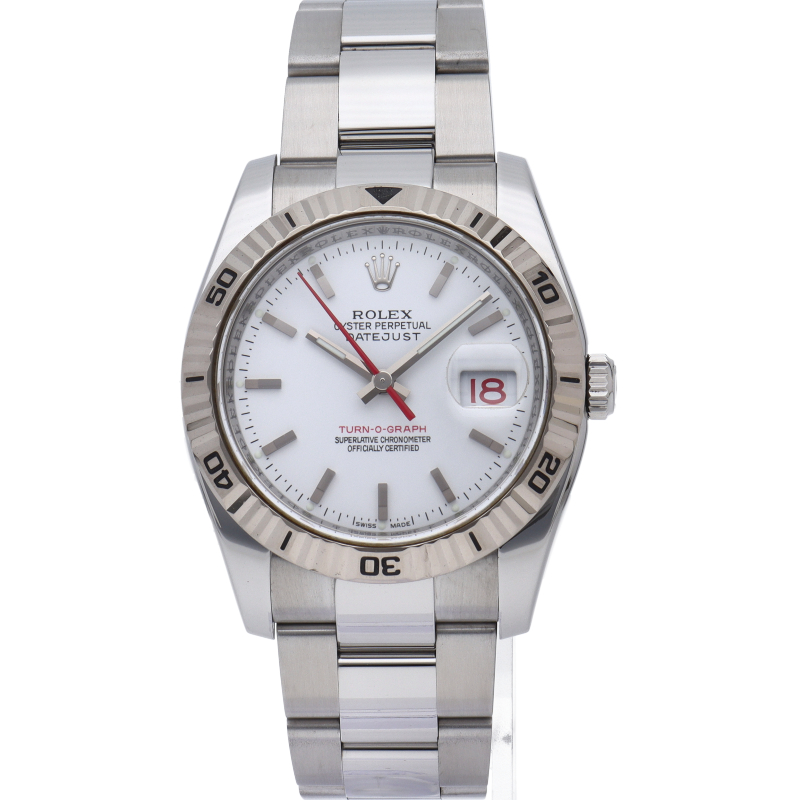 サンダーバードの後継機として誕生した「ターノグラフ」はケースやバックル等が仕様変更され高級感溢れる1本です。ホワイトゴールド製のベゼルが特徴です。