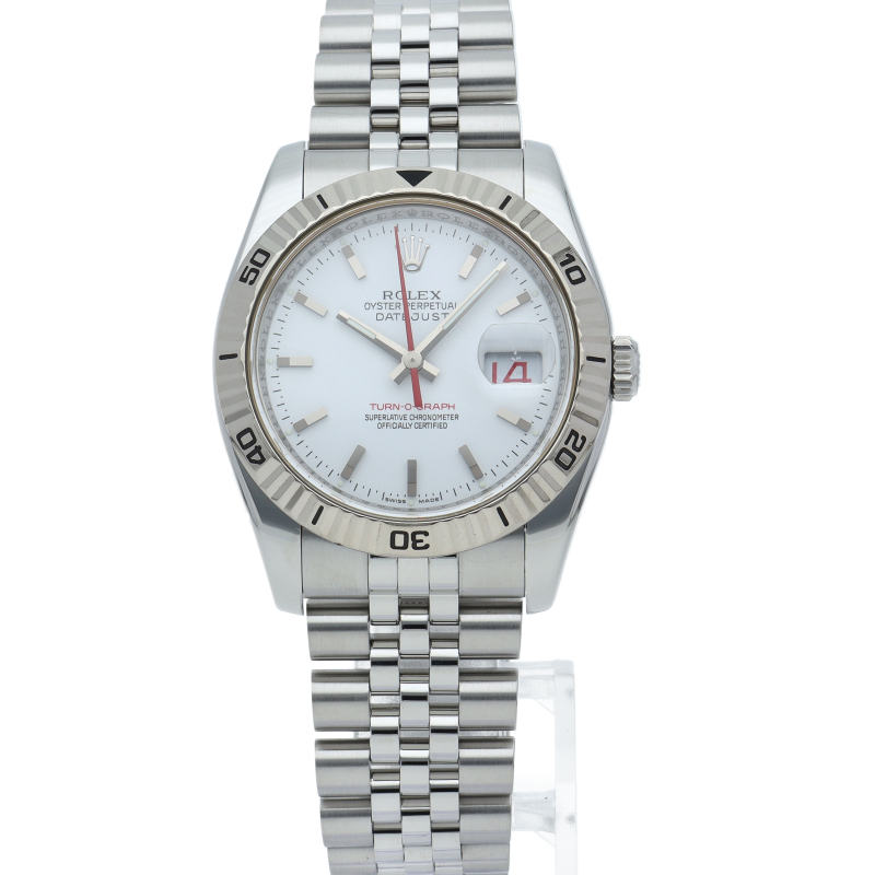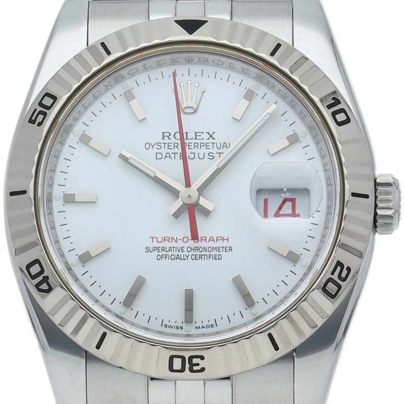 サンダーバードの後継機として誕生した「ターノグラフ」はケースやバックル等が仕様変更され高級感溢れる1本です。ホワイトゴールド製のベゼルが特徴です。