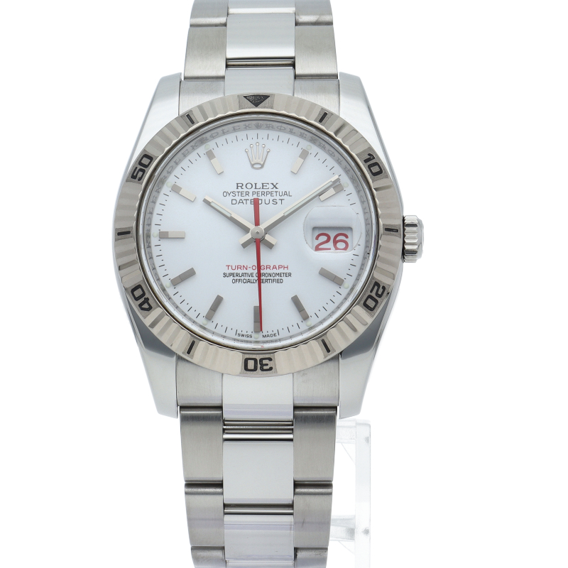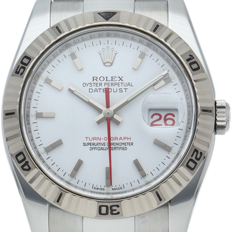 サンダーバードの後継機として誕生した「ターノグラフ」はケースやバックル等が仕様変更され高級感溢れる1本です。ホワイトゴールド製のベゼルが特徴です。