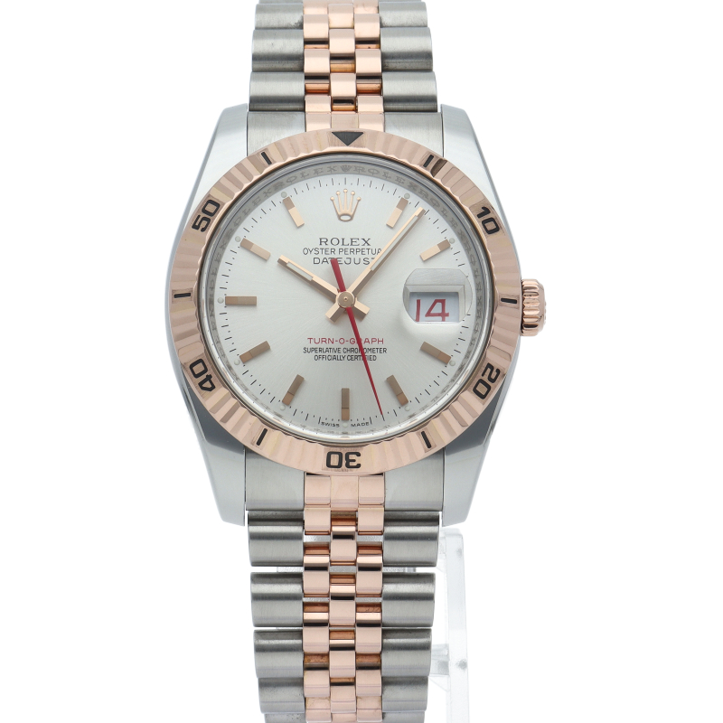 サンダーバードの後継機として誕生した「ターノグラフ」はケースやバックル等が仕様変更され高級感溢れる1本です。人気の高いピンクゴールドとのコンビモデルです。