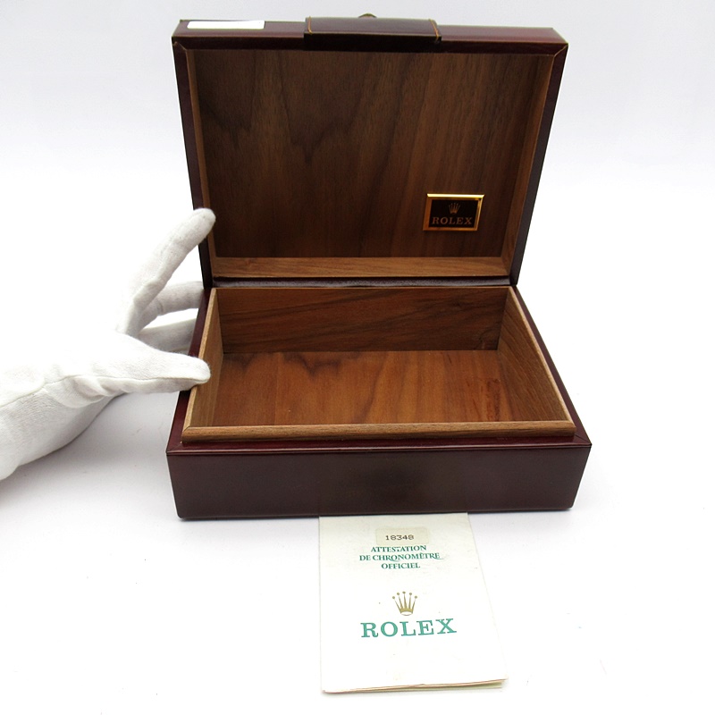 美品ですが、文字盤に劣化にともなう薄い点状のシミが全体的に見られます。ブレスレットは伸びも少なく良い状態です。メーカー純正ダイヤベゼル。海外購入品です。内箱には枕がないのでご了承くださいませ。