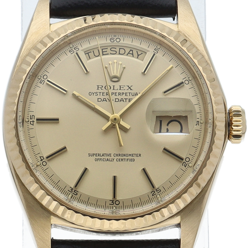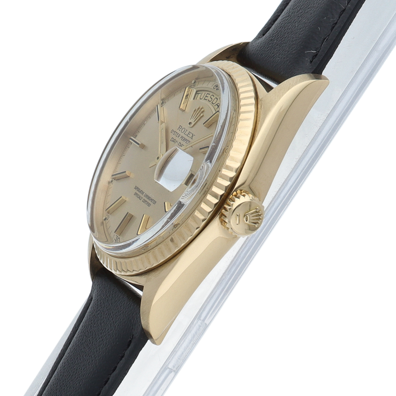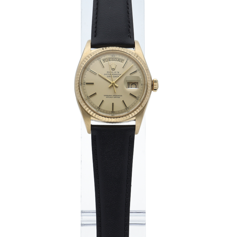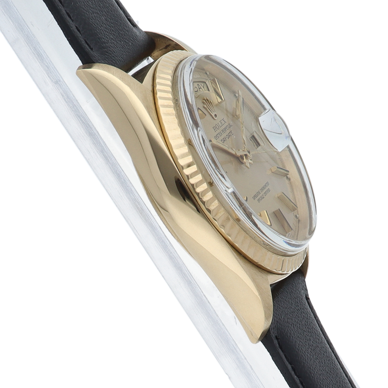 ロレックスの最高機種デイデイトのアンティークモデルです。イエローゴールドを贅沢に使用した高級感溢れるステータスウォッチです。