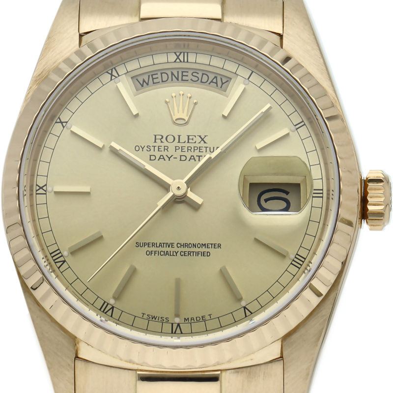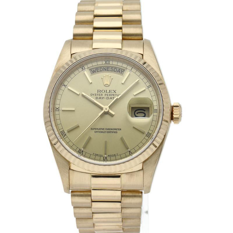 ロレックスのドレスウォッチの最高峰「デイデイト」。イエローゴールドを贅沢に使用した高級感溢れるステータスウォッチです。