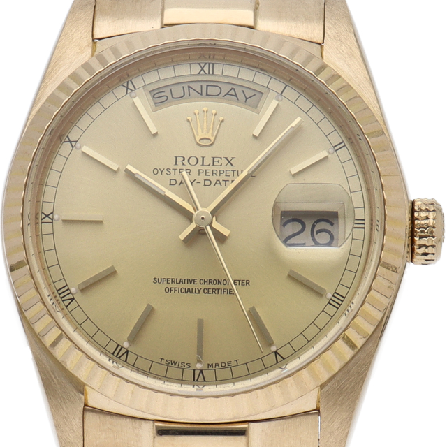 ロレックスのドレスウォッチの最高峰「デイデイト」。イエローゴールドを贅沢に使用した高級感溢れるステータスウォッチです。