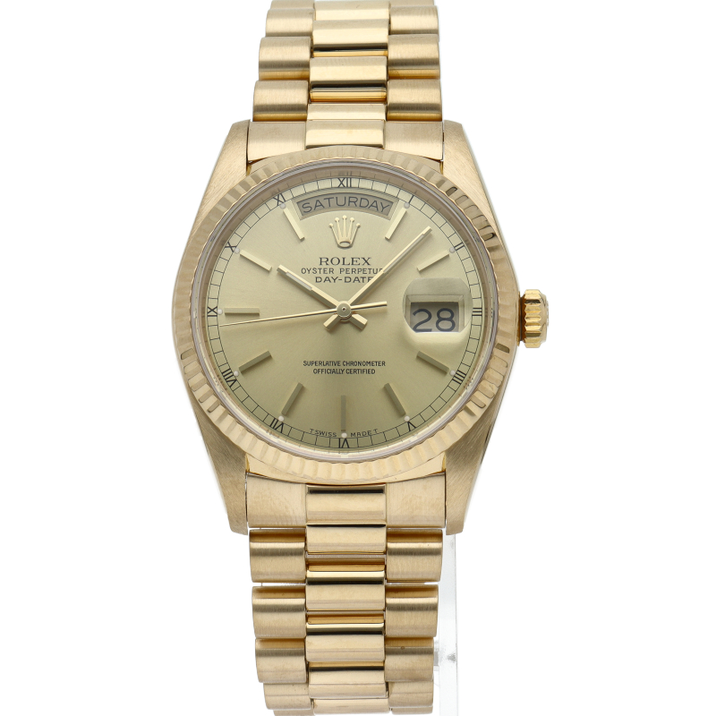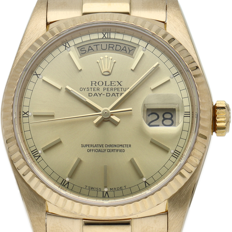 ロレックスのドレスウォッチの最高峰「デイデイト」。イエローゴールドを贅沢に使用した高級感溢れるステータスウォッチです。
