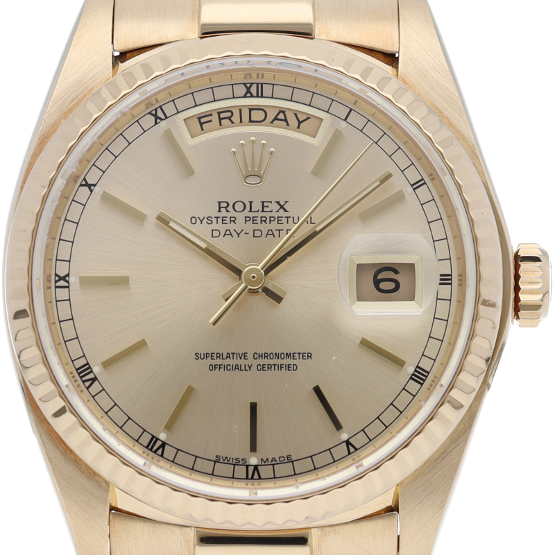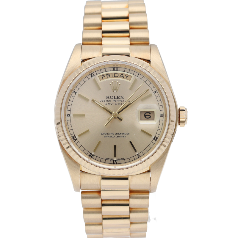 ロレックスのドレスウォッチの最高峰「デイデイト」。イエローゴールドを贅沢に使用した高級感溢れるステータスウォッチです。