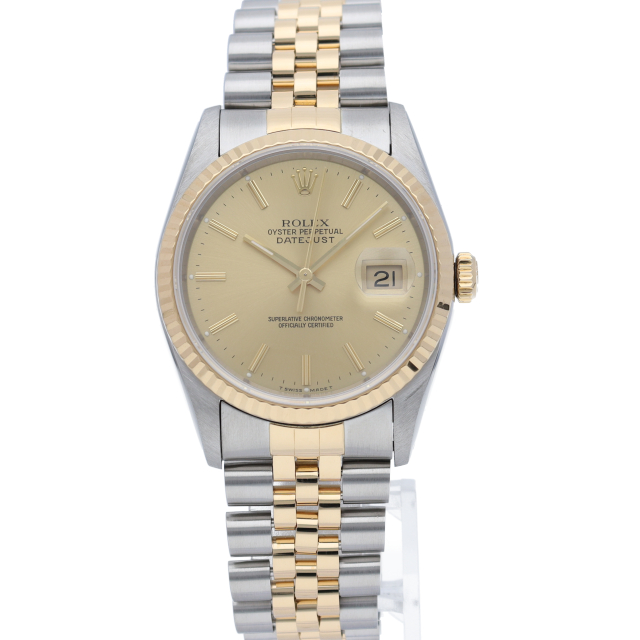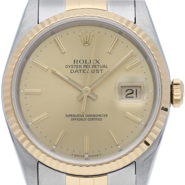 ロレックスのドレスウォッチで幅広い年齢層に愛されている「デイトジャスト」。イエローゴールドを使用した高級感溢れるステータスウォッチです。