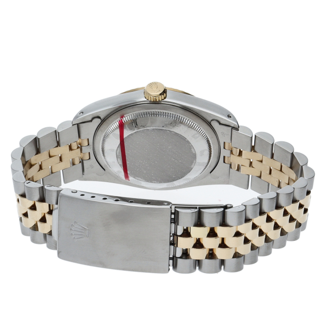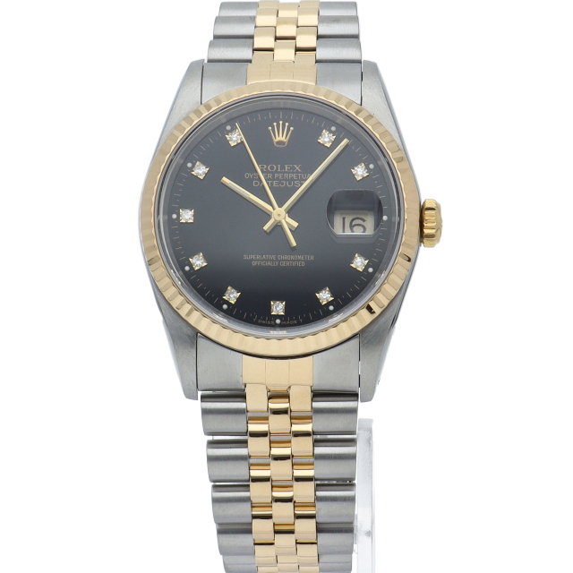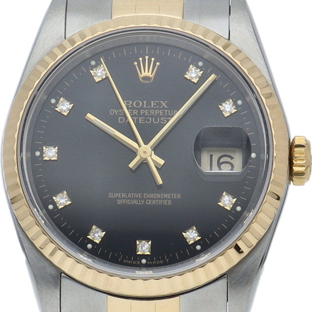 ロレックスのドレスウォッチで幅広い年齢層に愛されている「デイトジャスト」。イエローゴールドとステンレスのコンビ仕様に10Pダイヤが施されております。