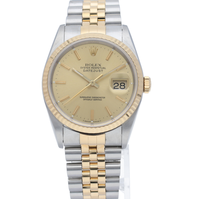 ロレックスのドレスウォッチで幅広い年齢層に愛されている「デイトジャスト」。イエローゴールドを使用した高級感溢れるステータスウォッチです。