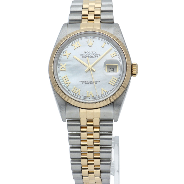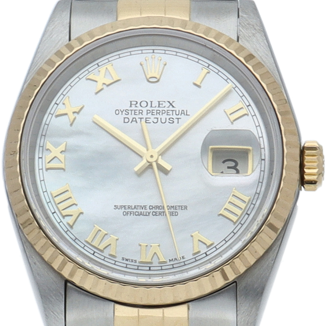 ロレックスのドレスウォッチで幅広い年齢層に愛されている「デイトジャスト」。イエローゴールドを全体に使用した高級感溢れるステータスウォッチです。