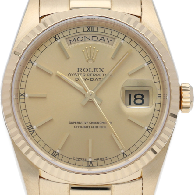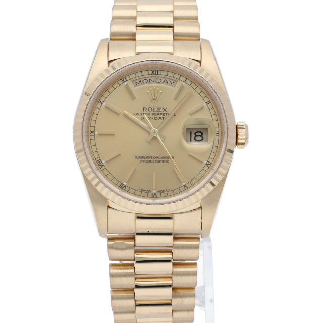 ロレックスのドレスウォッチの最高峰「デイデイト」。イエローゴールドを贅沢に使用した高級感溢れるステータスウォッチです。