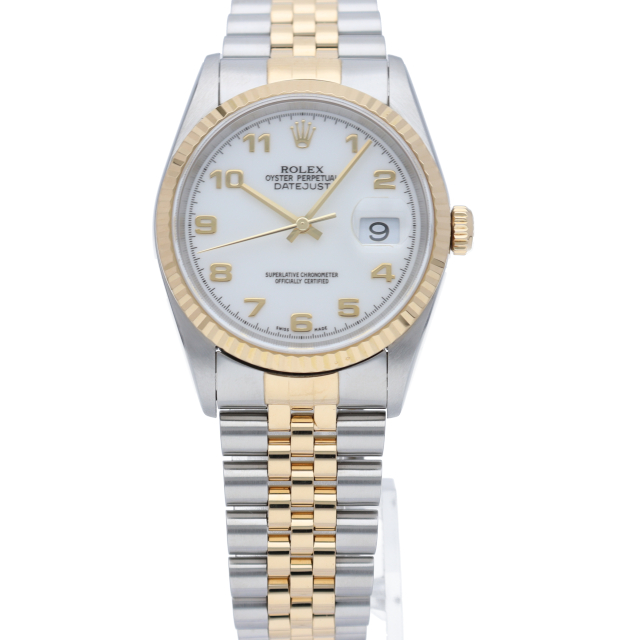 ロレックスのドレスウォッチで幅広い年齢層に愛されている「デイトジャスト」。イエローゴールドを全体に使用した高級感溢れるステータスウォッチです。