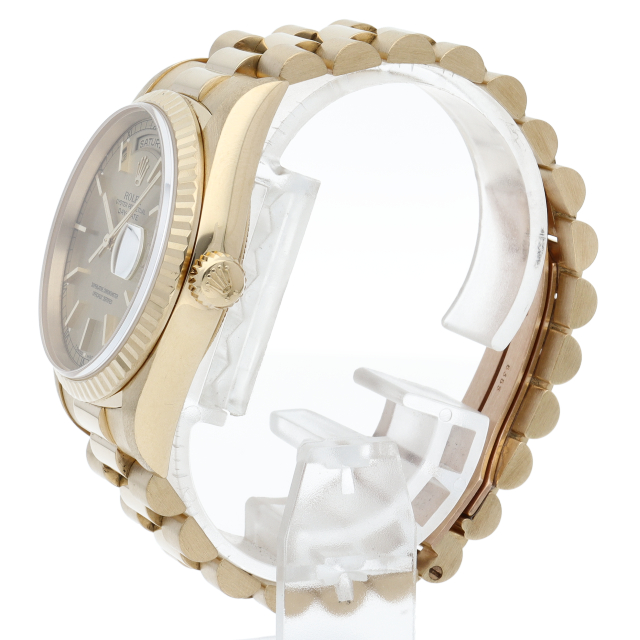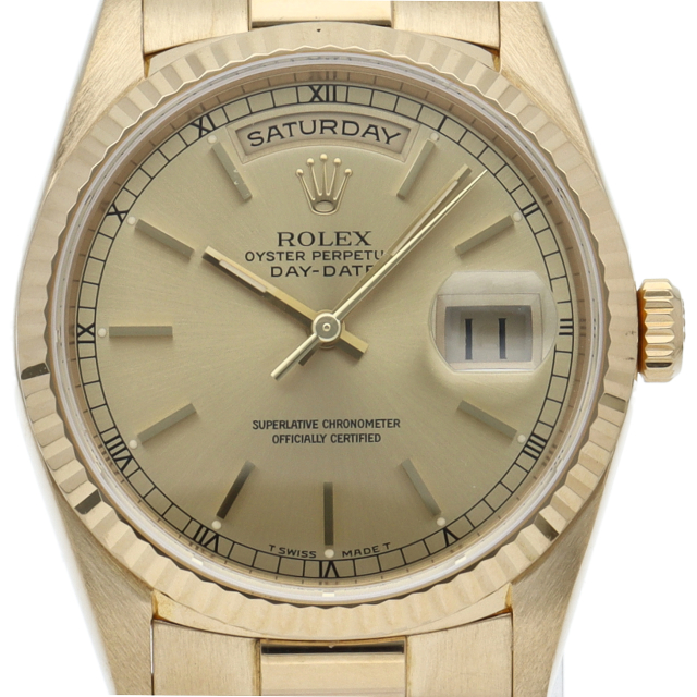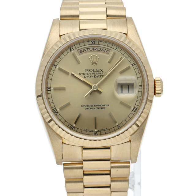 ロレックスのドレスウォッチの最高峰「デイデイト」。イエローゴールドを贅沢に使用した高級感溢れるステータスウォッチです。