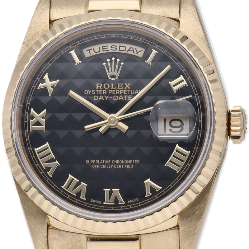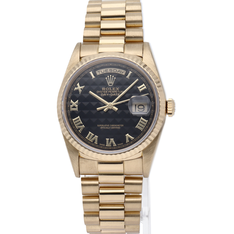 ロレックスのドレスウォッチの最高峰「デイデイト」。イエローゴールドを贅沢に使用した高級感溢れるステータスウォッチです。