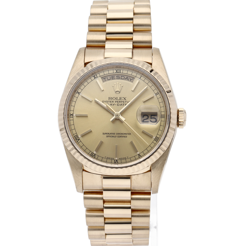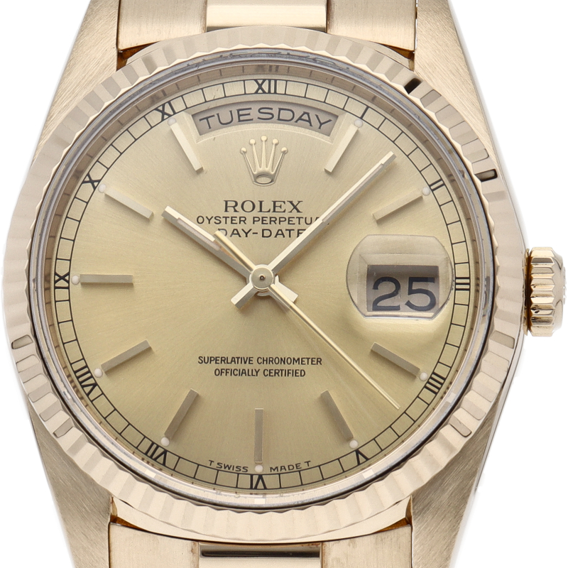 ロレックスのドレスウォッチの最高峰「デイデイト」。イエローゴールドを贅沢に使用した高級感溢れるステータスウォッチです。