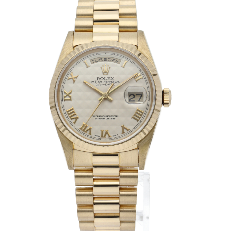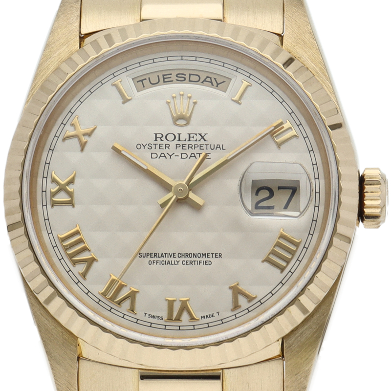 ロレックスのドレスウォッチの最高峰「デイデイト」。イエローゴールドを贅沢に使用した高級感溢れるステータスウォッチです。