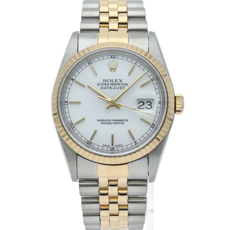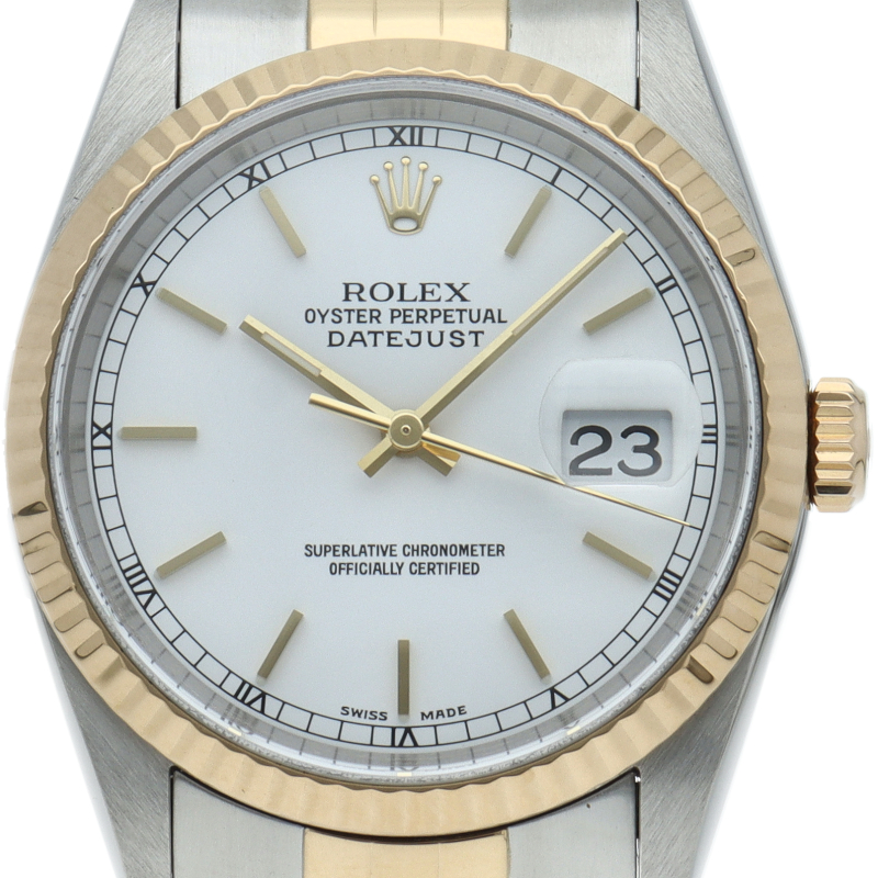 ロレックスのドレスウォッチで幅広い年齢層に愛されている「デイトジャスト」。イエローゴールドを全体に使用した高級感溢れるステータスウォッチです。