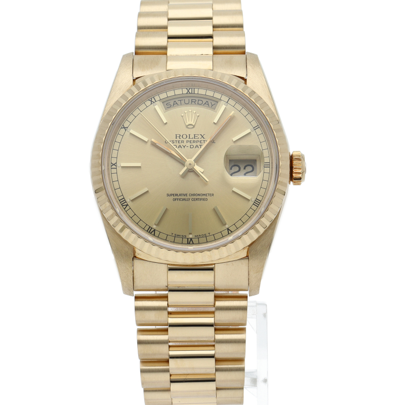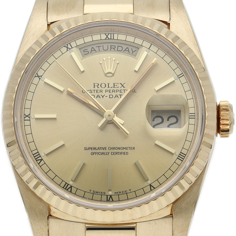 ロレックスのドレスウォッチの最高峰「デイデイト」。イエローゴールドを贅沢に使用した高級感溢れるステータスウォッチです。