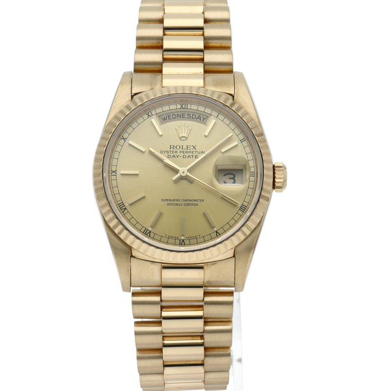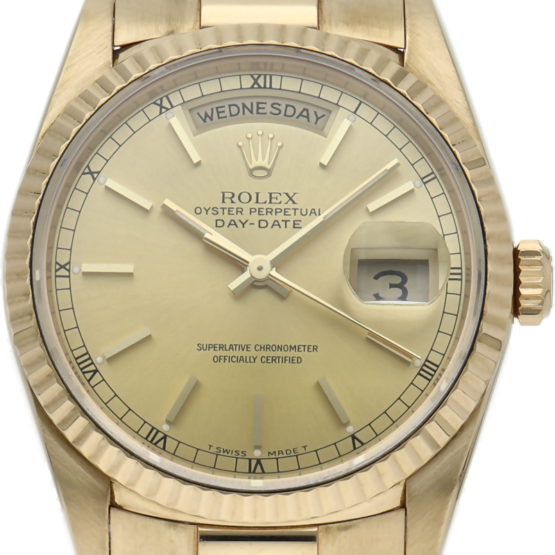 ロレックスのドレスウォッチの最高峰「デイデイト」。イエローゴールドを贅沢に使用した高級感溢れるステータスウォッチです。