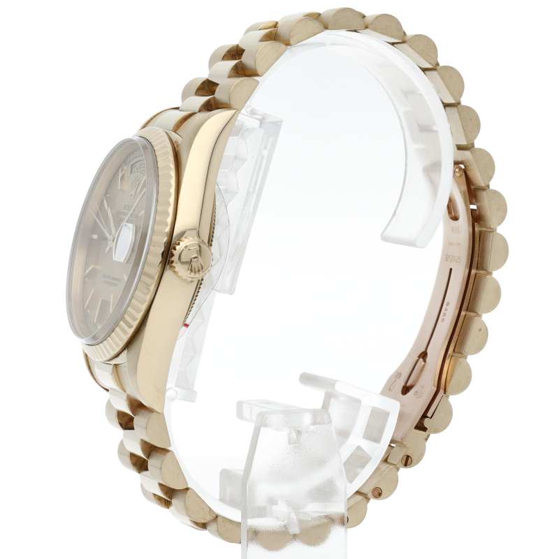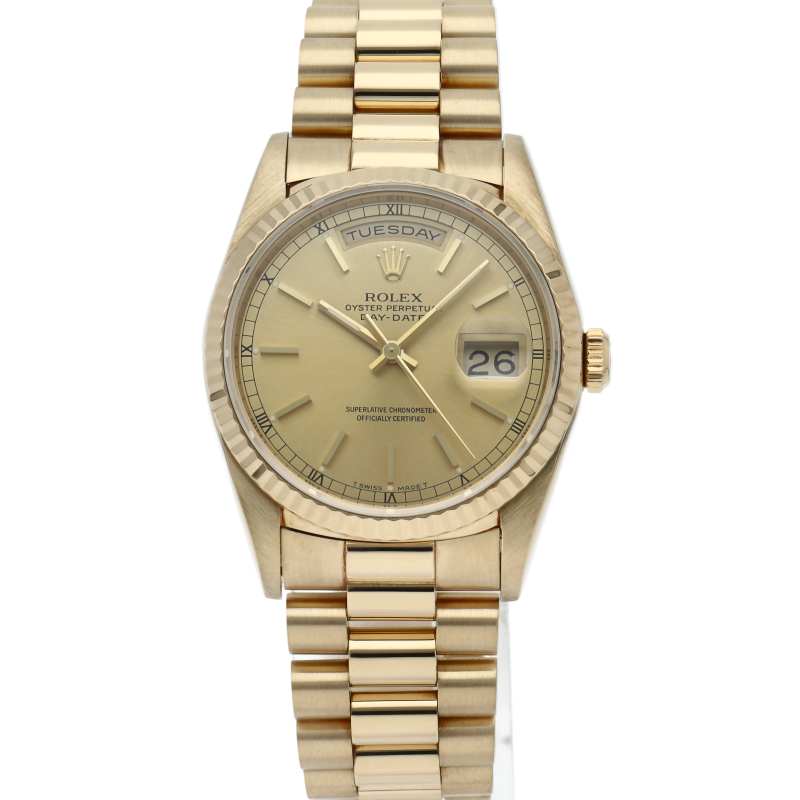 ロレックスのドレスウォッチの最高峰「デイデイト」。イエローゴールドを贅沢に使用した高級感溢れるステータスウォッチです。
