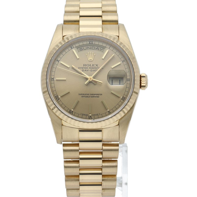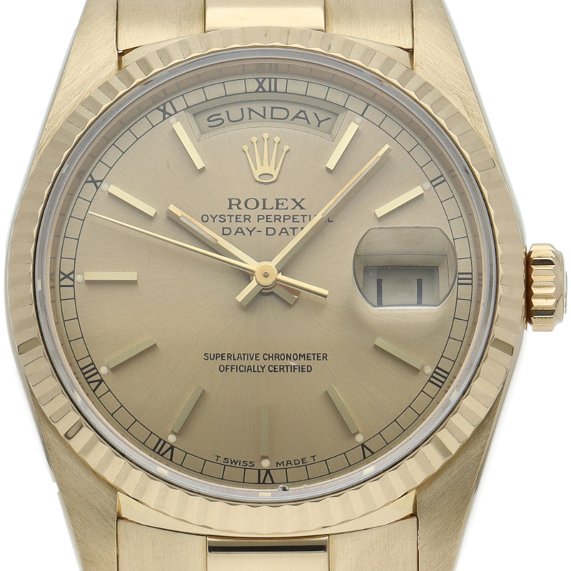ロレックスのドレスウォッチの最高峰「デイデイト」。イエローゴールドを贅沢に使用した高級感溢れるステータスウォッチです。
