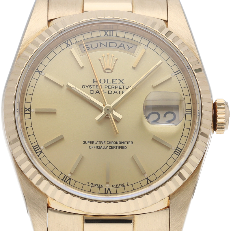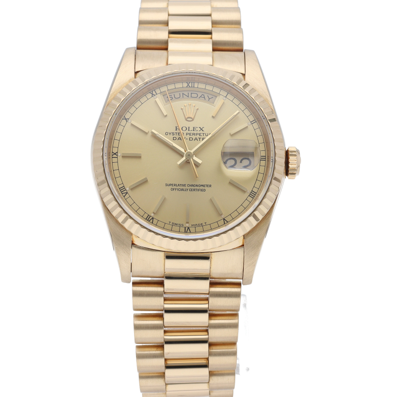 ロレックスのドレスウォッチの最高峰「デイデイト」。イエローゴールドを贅沢に使用した高級感溢れるステータスウォッチです。