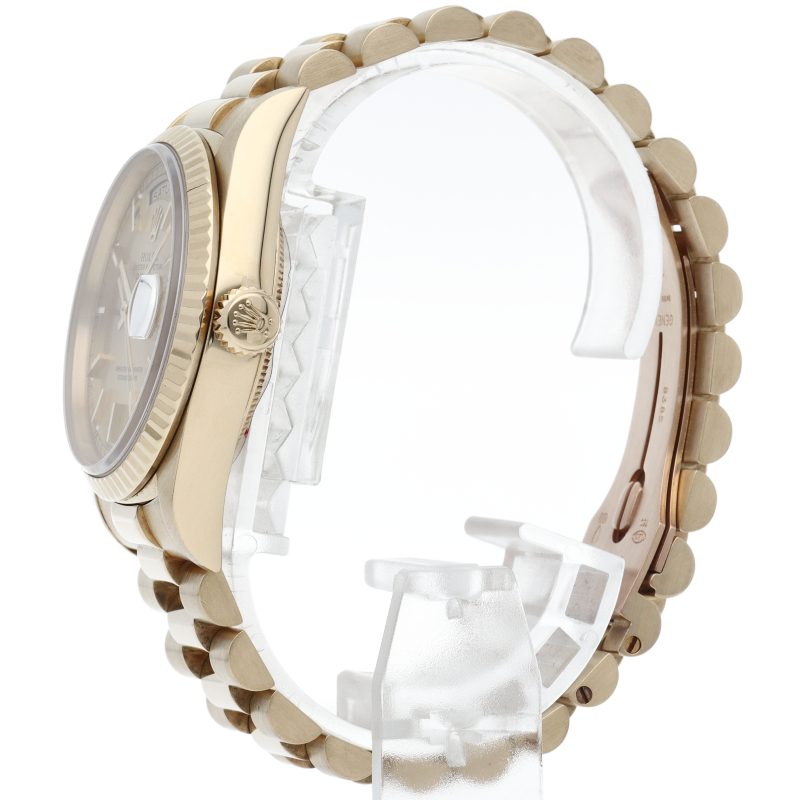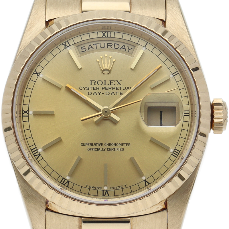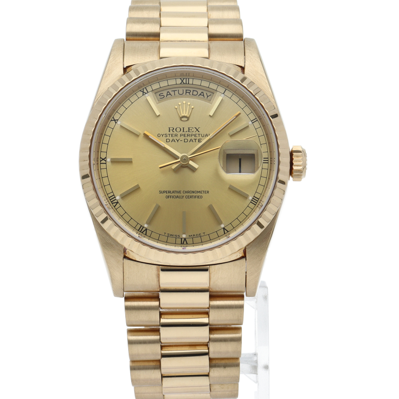 ロレックスのドレスウォッチの最高峰「デイデイト」。イエローゴールドを贅沢に使用した高級感溢れるステータスウォッチです。