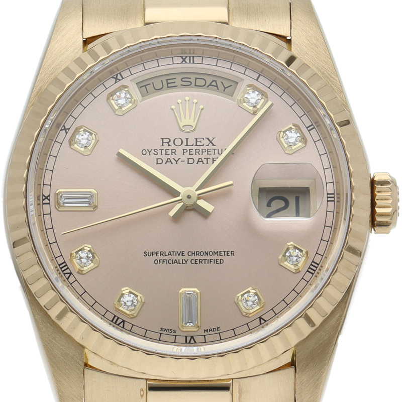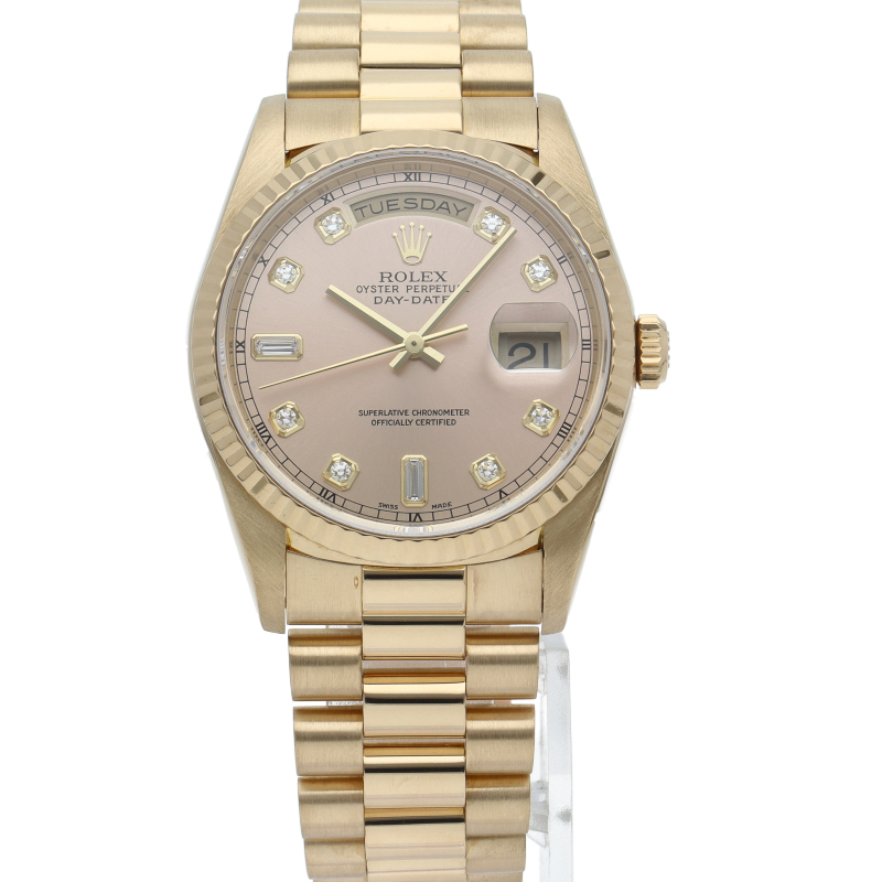 ロレックスのドレスウォッチの最高峰「デイデイト」。イエローゴールドを贅沢に使用した高級感溢れるステータスウォッチです。